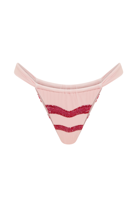 The ROBYN Beaded Triangle Bikini Top elevates a classic swim silhouette with refined, textural detailing. Designed with adjustable halter and back ties, this top allows for a personalised fit that flatters and supports. Beaded embellishment along the cups adds a subtle shimmer that catches the light beautifully, while full lining ensures comfort and confidence in and out of the water. Minimal, modern, and endlessly versatile, this top pairs effortlessly with its matching bottoms or your favourite mix-and-match swim staples.