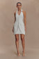 The RUTH Cotton Halter Mini Dress is a fresh take on structured femininity. Featuring a halter neckline with a stand collar and a centre front button opening, this bodycon silhouette is designed to contour with princess seams and back darts for a flattering fit. Front mock pocket flaps add a tailored touch, while a curved hem overlay sits atop an under-skirt for layered dimension. Whether styled for sunny days or dressed up for evenings, this dress delivers polished confidence in a mini length.