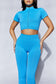 RYLIE is sleek, no-nonsense, and stays effortlessly stylish no matter what. A gorgeous cropped zip-up tee made of soft, subtly elastic material that hugs your curves, she’s the definition of sexy and sporty. The double-ended, two-way zipper makes for easy wear; anywhere and everywhere! Short sleeves and a cropped hem keep you cool even in the midst of moderate to intense cardio. And, finally, who can deny the allure of the high neck/collar and front zipper combo? Change your look from strictly athletic to casually coy with just by tweaking the zipper closure! Rylie is an absolute pleasure to wear. We recommend pairing her with any item in MESHKI’s Active Bottoms catalogue.