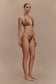 SACHI is a cute and summery triangle bikini with braided ties and half cups with slight ruching for that extra oomph! Thin strings and a wide neckline give it a bit of a sensual edge that’s balanced out by its playfully flirty design. The braided, self-tie shoulder straps are also functional, allowing you to customise and adjust the fit exactly to your liking. The gold toggles at the end work well with the lustrous swim fabrication, giving the overall bikini an eye-catching look that’s perfect for beach days and lazy pool lounging. Pair with our Melika Braided Bikini Bottoms for balanced visuals.