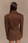 The SALLY Faux Suede Cinched Blazer is the ultimate blend of structure and softness. Featuring a classic notched lapel, internal shoulder pads, and front button fastening, this blazer is elevated by a cinched waist and back belt detail that sculpts the silhouette. Functional breast and welt pockets add a touch of polish, while the full lining ensures a comfortable fit. Pair with the Sally Faux Suede Short for a refined co-ord that’s equal parts tailored and on-trend.
