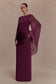 The SAMANTHA Waterfall Sleeves Maxi Dress balances structure and softness with deliberate contrast. Designed with a high boat neckline and a sculpted crepe suiting body, it’s shaped through princess seam lines and a gathered asymmetric waist panel for precise definition. Full-length sleeves in lightweight chiffon create a flowing waterfall effect, and can be shortened using a discreet underarm button attachment for versatile styling. Fully lined and finished with a centre-back invisible zip, hook-and-eye closure, and back split for ease of movement, this maxi-length silhouette delivers composed drama with modern restraint.