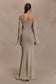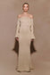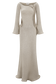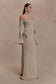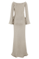 The SANDRINE Lurex Knit Maxi Dress is a striking blend of romance and refinement. Designed with a Bardot neckline and long sleeves, this fitted silhouette features flared sleeve hems and delicate ripple panel detailing through the front. The fishtail hem and softly rippled finish create graceful movement, while the unlined knit fabrication hugs the body in all the right places. this dress is your go-to for elevated evenings, balancing softness with sculptural allure.