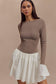 The SANSA Knit and Linen Mini Dress seamlessly blends comfort with style, featuring a crew neckline and a fitted knitted bodice and sleeves that offer a chic and cozy fit. The cotton flared sleeve cuffs and skirt add a touch of playful elegance, creating a flattering, feminine silhouette. With a stretch bodice that eliminates the need for a closure, this dress provides both ease and versatility. Perfect for casual outings or laid-back gatherings, the Sansa Dress combines a relaxed design with refined details for a sophisticated yet comfortable look.