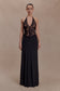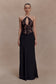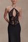 The SASCHA Lace And Satin Halter Maxi Dress is a refined expression of feminine eveningwear. Designed with a halter neck secured by a back button closure, it features a subtle front keyhole opening that adds understated allure. The intricate lace bodice offers soft structure and texture, flowing seamlessly into a smooth satin skirt that drapes effortlessly to a maxi length. Fully lined for comfort and finished with an invisible side zip, this dress balances romance and sophistication in a timeless silhouette.