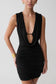 The SCARLET Slinky Cowl Mini Dress blends fluid draping with a sleek, sculpted silhouette. Designed with a soft cowl neckline and sleeveless cut, it frames the upper body while maintaining a clean, refined look. Gathered detailing through the skirt adds subtle texture and enhances the fitted bodycon shape. Fully lined and finished with a closed back, this mini-length dress delivers effortless elegance with modern allure.