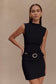 Make a sleek statement in the SCHEANA Stretch Crepe Mini Dress, where clean lines meet powerful design. Featuring a high neckline and wide shoulders, this sleeveless silhouette creates a confident frame. The mini length is balanced by a low-rise waist belt that accentuates the figure, while the stretch crepe fabric hugs in all the right places. Fully lined for comfort and structure, this dress is your go-to for elevated nights out with a modern edge.