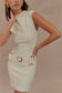 Make a sleek statement in the SCHEANA Stretch Crepe Mini Dress, where clean lines meet powerful design. Featuring a high neckline and wide shoulders, this sleeveless silhouette creates a confident frame. The mini length is balanced by a low-rise waist belt that accentuates the figure, while the stretch crepe fabric hugs in all the right places. Fully lined for comfort and structure, this dress is your go-to for elevated nights out with a modern edge.