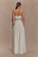 The SCOTTIE Gathered Linen Knot Midi Skirt is a warm-weather essential with a refined twist. Designed with a high waisted fit and relaxed A-line silhouette, this skirt features soft gathering along the waistline and side seams for subtle volume and movement. A twisted front knot adds sculptural interest, while the invisible side zipper keeps the look clean and streamlined. Fully lined for comfort, pair it with the matching Scottie Shirred Linen Bandeau for a coordinated set that’s perfect for long lunches, holiday escapes, or everyday elegance.