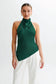 Introducing the SERAPHINE Satin Halter Top, a vision of elegance and allure. Crafted to perfection, this top features a stunning halter neckline adorned with a graceful cowl detail, adding a touch of sophistication to your look. The low back design exudes understated glamour, while the asymmetrical hemline adds a modern twist. Complete with a delicate button closure at the neckline, it ensures a secure and stylish fit. Lined for comfort and coverage, this top promises a luxurious feel against your skin. Whether paired with tailored trousers for a chic evening ensemble or dressed down with denim for a casual yet refined look, the Seraphine Satin Halter Top is sure to make a statement wherever you go.