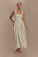 The SHARON Scuba Jersey Midi Dress combines timeless sophistication with flattering design. Featuring a square neckline and sculpted straps, it enhances your shape with gathered hips and contoured waist panels. The rounded back waist adds a soft, feminine touch, flowing into a full skirt with beautiful movement. Made from thick jersey fabric and partially lined for comfort, this midi-length dress is the perfect choice for elegant occasions or polished everyday style.
