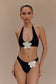 Floral Crochet Tie Up Bikini Bottom - Black And White