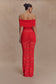Off Shoulder Crochet Knit Maxi Dress - Blood Orange