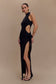 The STEPHANIE Cut Out Knit Maxi Dress is the epitome of modern elegance with a daring twist. Designed with a high cut neckline and sleeveless silhouette, this dress hugs your curves in a flattering bodycon fit. Crafted from a soft, stretch knit fabric, it offers a comfortable yet form-fitting shape. The side cutout detail adds a bold touch, while the delicate bow at the hip brings a hint of femininity. A side leg split enhances its allure, allowing for easy movement and a dramatic finish. With its maxi length, this unlined knit dress is perfect for an evening out or a special occasion.