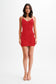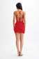 The SUKI Crochet Maxi Dress with Flowers features a V neckline and crisscross functional straps, exuding sophistication and grace. Its bodycon silhouette accentuates curves, while delicate flower appliqué adds a whimsical touch. Crafted from unlined knitwear, it offers comfort and style for any occasion.