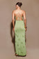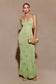 The SUKI Crochet Maxi Dress with Flowers features a V neckline and crisscross functional straps, exuding sophistication and grace. Its bodycon silhouette accentuates curves, while delicate flower appliqué adds a whimsical touch. Crafted from unlined knitwear, it offers comfort and style for any occasion.
