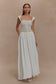 The TAHLIA Pointelle Knit Midi Dress is a delicate fusion of texture and romance. Designed with a flattering square neckline, this midi dress features elasticated cap sleeves and frill detailing along the neckline and waist seam for a soft, feminine touch. The knit bodice hugs the figure, while the low-waist A-line silhouette flows into a woven gathered skirt, creating graceful movement. A front hook-and-eye closure adds vintage charm, while the partially lined design ensures breathability and comfort. Perfect for sunlit days, special occasions, or effortless everyday elegance.