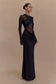 Slinky And Mesh Long Sleeve Maxi Dress - Black