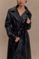 Faux Leather Trench Coat - Black