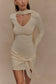 The TARON Knit Mini Dress With Scarf is a bold blend of comfort and edge. Designed with a flattering V neckline and a body-hugging fit, this mini dress features long sleeves and a hip sash overlay that adds dimension and movement. A detachable neck scarf offers styling versatility, meaning it can be tied, draped, or removed for a cleaner look. Unlined for a lightweight feel, this dress is your go-to for effortless cool with a fashion-forward twist.