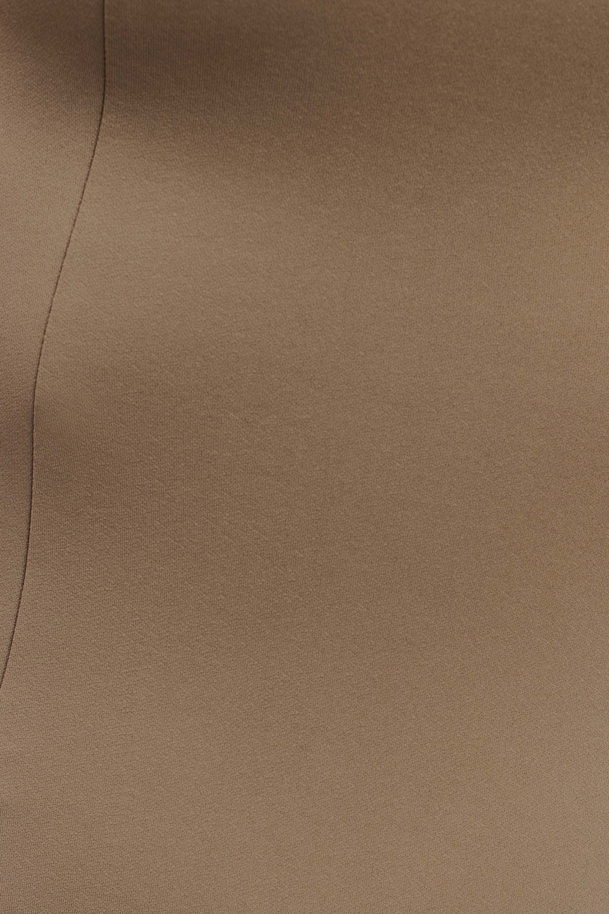 The TAYLOR Draped Crepe Midi Dress is a stunning fusion of elegance and modern design. Its asymmetrical gathered neckline adds a unique and sophisticated touch, while the fitted bodice enhances your silhouette with its flattering panel detailing. The midi length and straight skirt create a sleek, streamlined look, perfect for both formal and semi-formal occasions. A side zip ensures a smooth fit, and the centre back vent allows for ease of movement. The Taylor Dress combines refined style with contemporary details, making it a standout choice for any special event.
