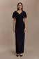 The THELMA Bardot Maxi Dress offers two equally striking ways to wear—gathered sleeves resting delicately on the shoulders for a refined finish, or draped off the shoulders for an alluring Bardot silhouette. Designed with a flattering V-neckline, pleating across the body, and a relaxed pencil-shaped fit, this dress flows to a maxi length for an elongating effect. Internal bust cups, a secure waist stay, and an invisible centre back zip ensure a supportive fit, while internal snaps and a chain loop make its multi-way styling effortless. Fully lined for comfort, this dress is a sophisticated choice for both classic and contemporary moments.