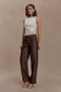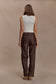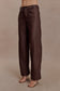 Faux Leather Mid Rise Pants - Dark Chocolate