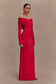 Off Shoulder Ruched Maxi Dress - Red