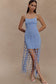 The TOVE Hand Knit Flower Mini Dress celebrates texture and detail with its thick knit fabrication and delicate crochet floral accents. Designed in a bodycon silhouette, it features adjustable straps for a customised fit and is left unlined for a natural, breathable feel. Perfect for warm-weather styling, this dress offers a unique, artisanal touch that makes every wear feel special.