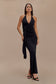 The TYLA Draped Slinky Halter Maxi Dress exudes modern sophistication with its halter neckline and elegant V-front. The draped bodice and tie detail at the hip create a flattering, feminine silhouette, while the open lower back and subtle back split add an irresistible touch. Made from stretch fabric for a comfortable yet sleek fit, this dress promises graceful movement and effortless style for your most memorable moments.