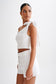 Introducing the VENEZIA Linen One Shoulder Tie Top, a sleek and sophisticated piece for your summer wardrobe. With its one-shoulder design, it offers a modern and elegant silhouette that beautifully accentuates the shoulders. Featuring adjustable shoulder ties, it ensures a customised fit for all-day comfort. The princess panel seams add structure and refinement, enhancing the overall look with tailored detailing. Complete with a convenient side zipper for easy wear, it promises a seamless and flattering fit. Lined for comfort and quality, this top is perfect for warm-weather styling. Whether paired with high-waisted shorts for a casual daytime look or the Venezia Linen Midi Skirt With Ruffle for a more dressed-up ensemble, the Venezia One Shoulder Tie Top exudes effortless charm and contemporary style.