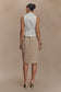 The VERA Suiting Split Front Midi Skirt brings modern structure to classic tailoring. Designed with a flattering high waisted fit, this midi silhouette features front and back pleats for subtle volume and shape. A centre front seam opens into a refined split at the hem, adding movement and a hint of allure. Complete with side pockets, belt loops, and an invisible side zip, This dress is the perfect balance of function and sophistication—ready for desk to dinner and beyond.