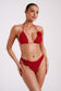 The VERALI is a classic bikini top with spaghetti straps and a delicate rose detail at the top left bust. Its custom crochet fabric is lined for maximum comfort while the functional, self-tie fabric straps at the neck and back allow for a custom, supportive fit. We’ve designed this with a clean and contemporary feel with a halter neckline and solid colour story. Match with the Valencia Rose Crochet Bikini Bottom to complete the set.