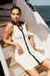 The VERUKA Collared Contrast Knit Mini Dress is a captivating blend of sophistication and contemporary flair. Featuring a flattering V neckline and a chic collar, this dress exudes timeless charm. The non-functional centre front placket with centre front buttons adds a touch of elegance, while the contrast placket and collar offer a modern twist. With front functional pockets and a mini length, it seamlessly combines style and functionality. Sleeveless for a chic silhouette, and crafted from unlined knit fabric, this dress offers comfort and versatility for any occasion. Whether you're stepping out for brunch with friends or attending a stylish soirée, the Veruka dress is sure to make a statement.