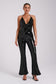The WILMA are a pair of sparkling wide-legged pants with a high waistline and flared hems. An invisible zipper closure at the side seam gives it a sleek, seamless silhouette. The legs transition into a flattering bootcut that complements its high, fitted waist. Lined sequinned fabrication adds a touch of comfortable glam, making these pants the perfect choice for all-night wear.
