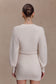 The XADEN Wool Mix Knit Mini Dress blends cosy texture with a refined, contemporary silhouette. Designed with a semi-functional button-front closure, this dress features a flat-knit blouson bodice and sleeves that create soft volume through the upper body. The fitted ribbed skirt and sleeve cuffs add contrast and structure, shaping the figure with subtle definition. Crafted in a warm wool-mix yarn and left unlined for natural comfort, this mini-length design brings effortless polish to cool–weather dressing.