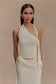The XANTHIA Knit Halter Top brings modern detailing to a sleek, minimalist silhouette. Designed with an asymmetrical halter neckline, it features side hardware and a draped sash for a touch of movement. The open back adds an alluring finish, while the unlined knit fabrication keeps this top lightweight and versatile—perfect for pairing with tailored pants, a statement skirt, or its coordinating bottom for a complete set.