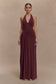 Ruched Halter Maxi Dress - Mahogany