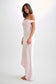 YVETTE is a Slip Maxi Dress with a low, open back, a slight cowl detail for the front neckline, and a loose, flowing hem. The front neckline dips into a slanted arrangement, with one shoulder strap up for a sleeveless look and the other down in an off-shoulder style. The asymmetrical hem is much the same, with one part gathered above the ankle and the other hitting the ground. Two thin fabric straps run across the back, adding extra detail to the low, back neckline.