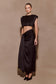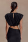 The ZENDAYA Silk Crop Top – Black combines timeless sophistication with contemporary edge. Crafted from lustrous silk, it features a high neckline and gathered under-bust detailing that create a sculpted, feminine shape. Internal shoulder pads lend subtle structure to balance the fluid drape, while the cropped length adds a modern touch. Fully lined for a smooth finish and secured with a delicate button closure at the back neck, this top is the definition of refined simplicity — designed to move seamlessly from day to evening.