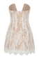 The ZOEY Lace Corset Mini Dress is designed to shape and define with confidence. Featuring a strapless neckline with a deep V plunge, it frames the décolletage while maintaining a strong, sculpted silhouette. Panelled construction with internal boning provides structure through the bodice, complemented by an internal adjustable waist stay for added support and a secure fit. Fully lined for comfort, this mini-length style is finished with a scalloped hem that softens the look with subtle texture, and a discreet side invisible zip for seamless wear. Bold yet considered, this dress delivers impact through precision and detail.