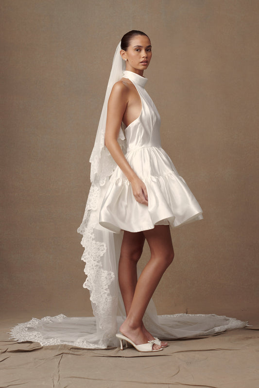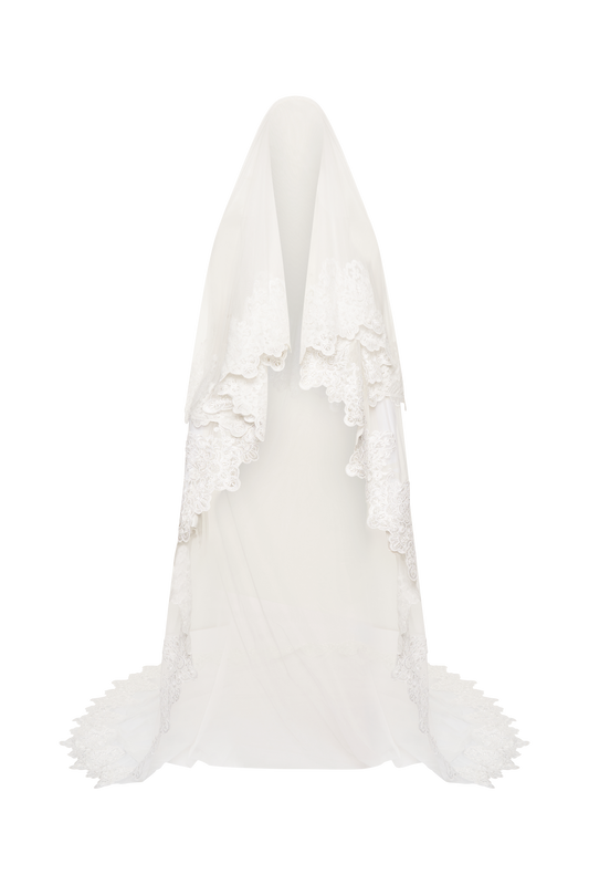 Paulette Lace Trim Veil - White